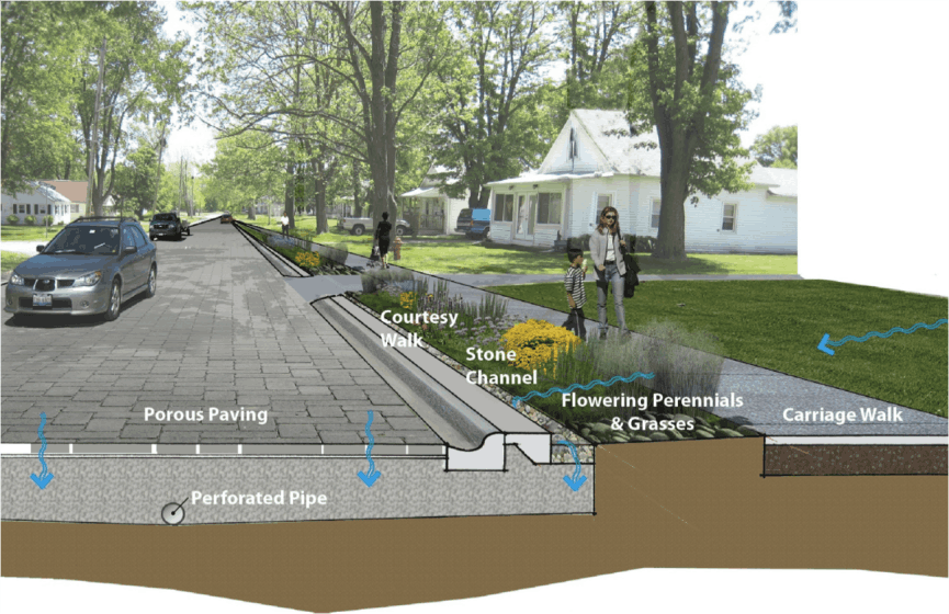 O antigo conceito de que os pavimentos tinham de ser impermeáveis, dão lugar a pisos porosos que auxiliam os dispositivos de drenagem na coleta e encaminhamento das águas pluviais;